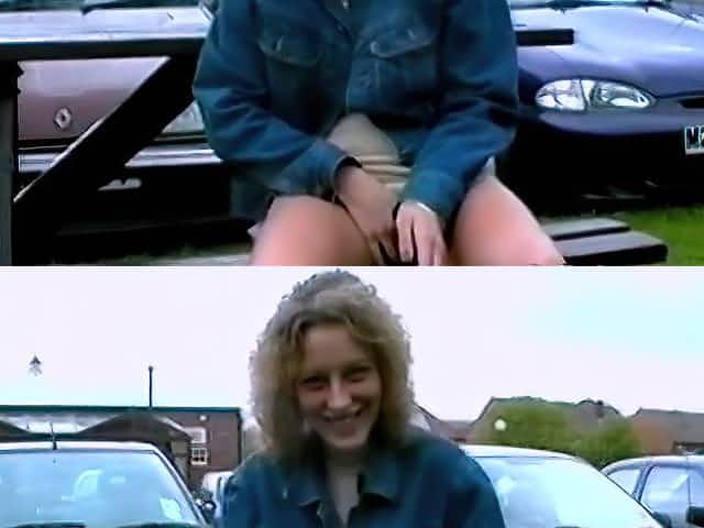 Dirty girl in a public parking flashing caught blow