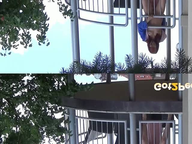 This redhead loves showing off her private parts on the balcony