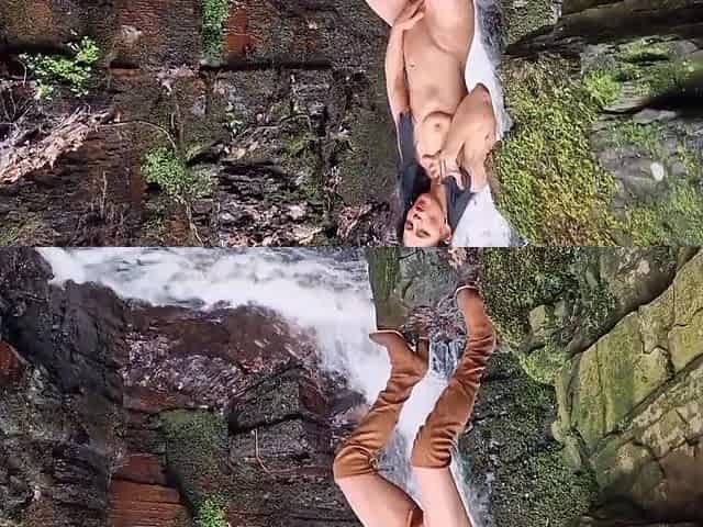 Lady Sonia flashing then masturbates in the forest