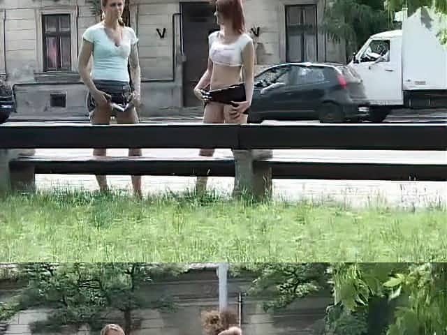 Girls defiles on the street showing off their asses