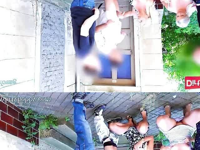 Shocking PUBLIC gangbang threesome group street sex with pretty blonde