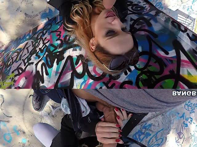 Radiant pornstar fucks a hung stranger hardcore outdoors