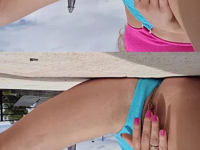 Teen doxy little bailey toys her snatch in public