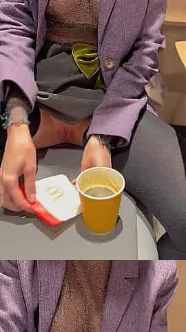 No pants in a cafe