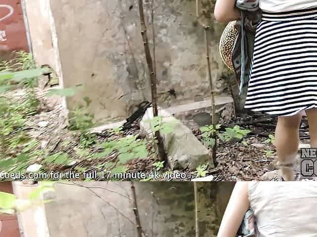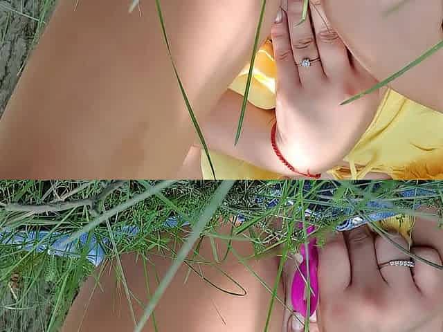 slim hotty masturbates outdoors