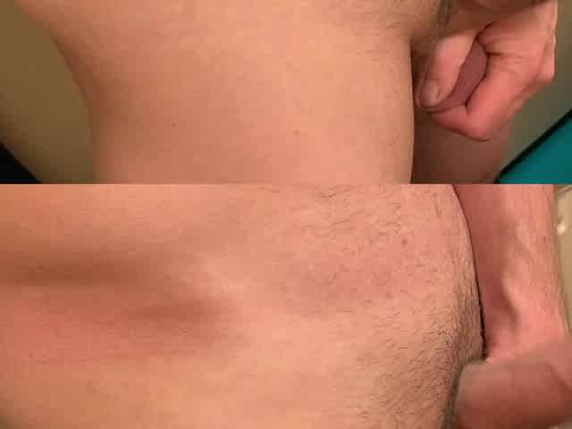 MILF with big ass and big belly rubs pussy and jerks off my dick