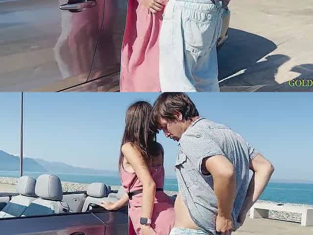 Slender doxy gave herself to a rich stud on the coast for a cabriolet