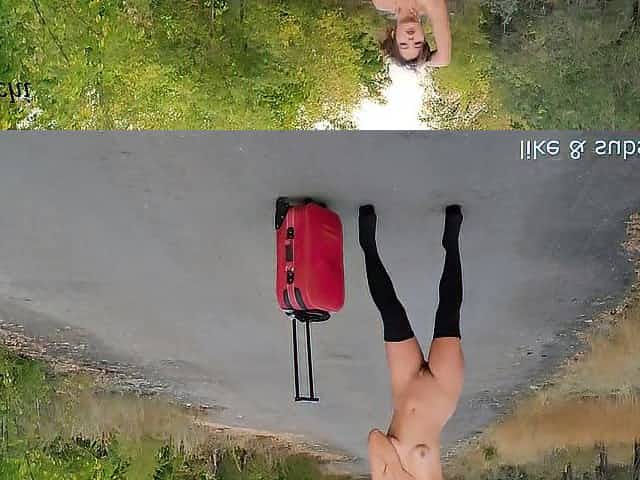 Brunette Flashing Her Titties And Pussy Outdoors In Public