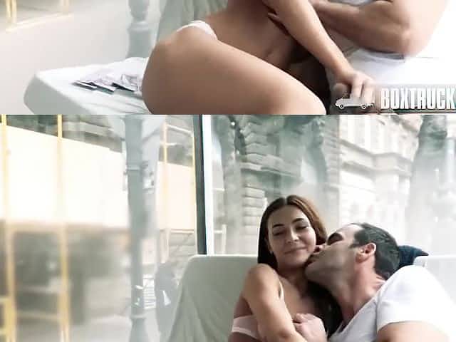 Box Truck Lovemaking - Naughty Dark Hair Girl Student gets a ejaculate on her hairless pussy twat