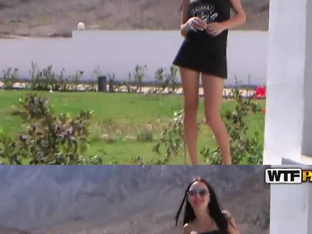 Public solo scene with the naughty teen brunette Veronika