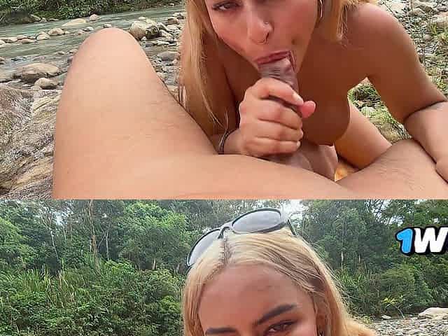 A DEPRAVED CUTIE IN A RIVER. Day of nudity in the river they screw me hard in the face and cunt