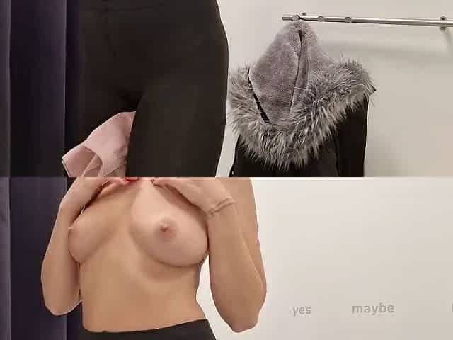 Open curtain in the fitting room public flashing of tits