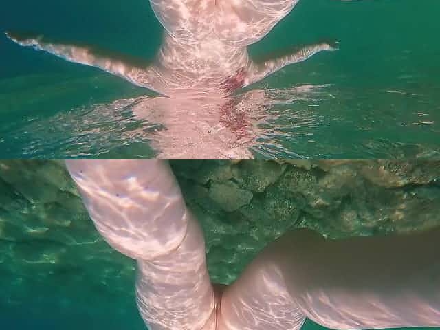 Ginger Gal with Big Natural Tits and Perfect Body Swimming Naked in Sea