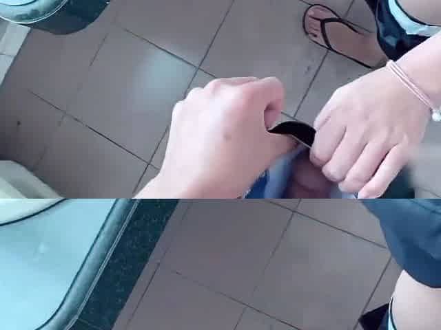 Chloe 18 rubs her pussy in public toilet
