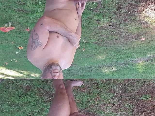 Morning pee outside nude
