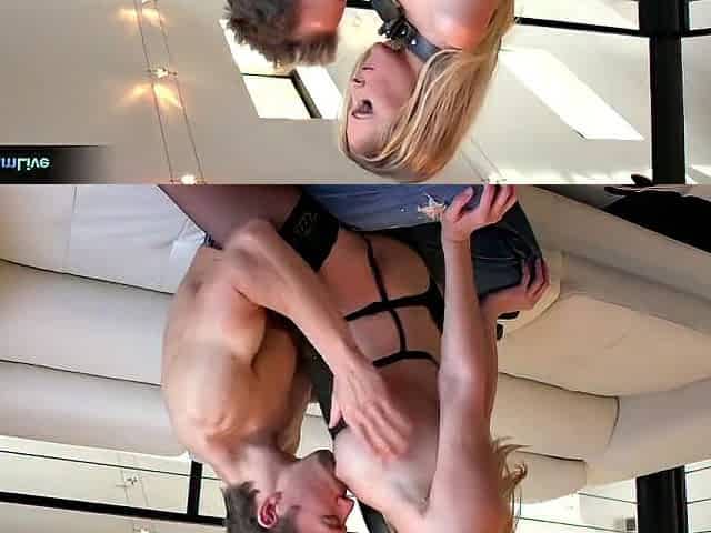 Blonde slut gets hard fucked in 3some