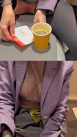 I undress and drink coffee in a cafe without panties