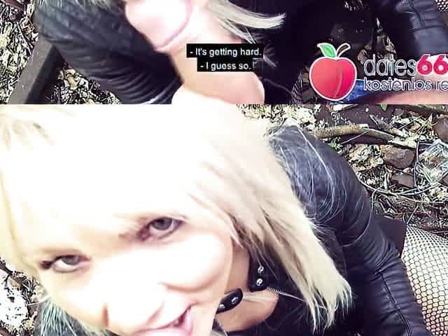 Deutsche Amateurin mit großem Arsch und Titten wird in öffentlichem Wald vollgespritzt
