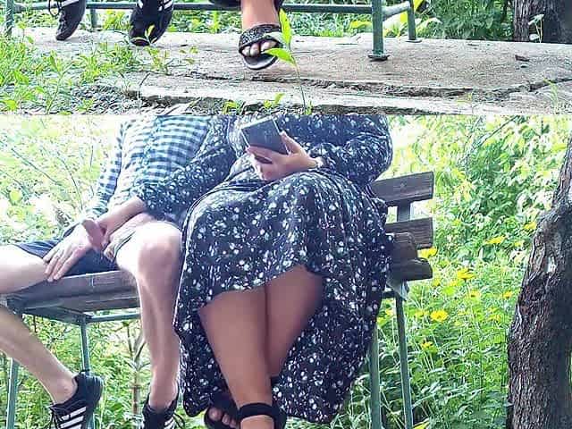Real girlfriend fucks her boyfriend outdoors in public