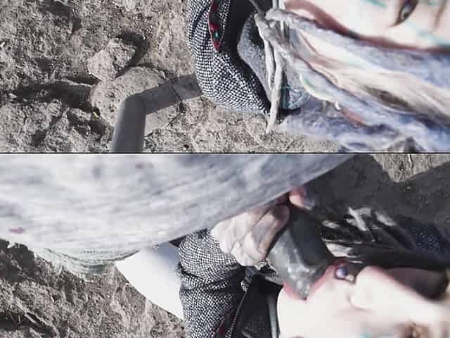 Outdoor topless blowjob in the cold