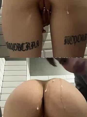 Horny teen slut give blowjob and get fucked in public toilet