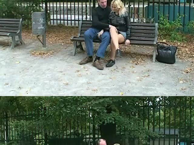 Nymph rides boner on park bench
