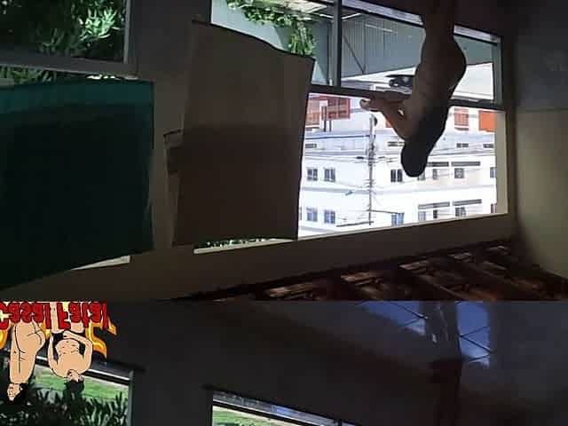 Brazilian wife cleaning without panties and flashing for workers