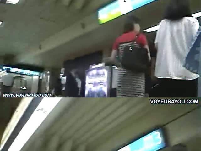 Asian teen girl wearing thong in a public park