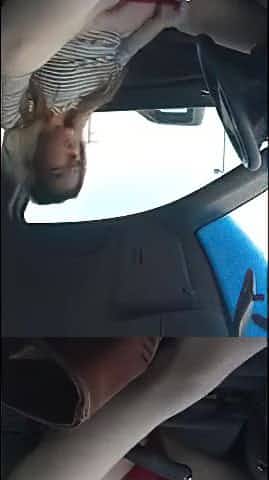 Pierced woman fucks in fake taxi in public car park