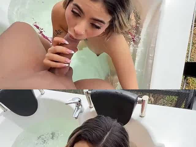 The cleaning lady comes into the bath and helps me by giving me a admirable oral pleasure