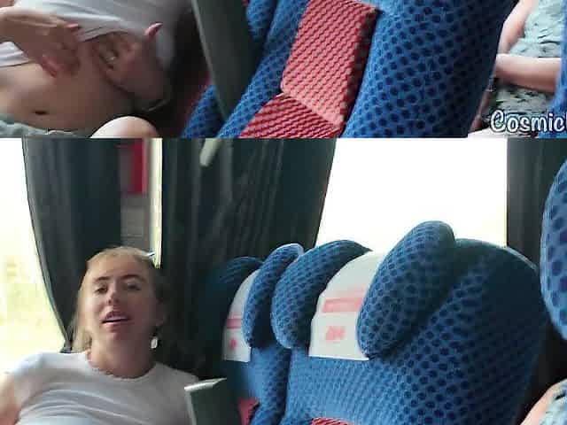Risky! Cutie Cums on Public Bus with Dildo