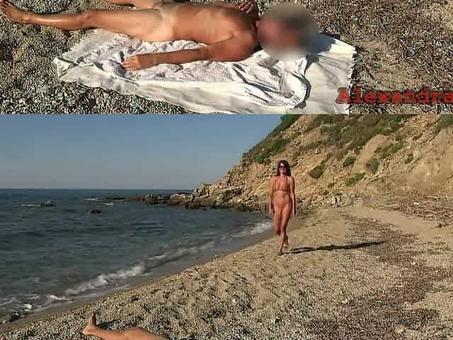 Stranger ramrod caught wanking on the beach and juiced