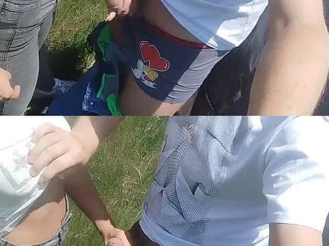 Public display of affection: hot lesbian scene with natural tits and ass