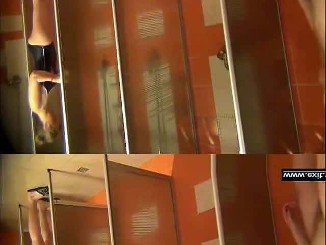 A hidden camera in a public shower films gorgeous women while they soap up