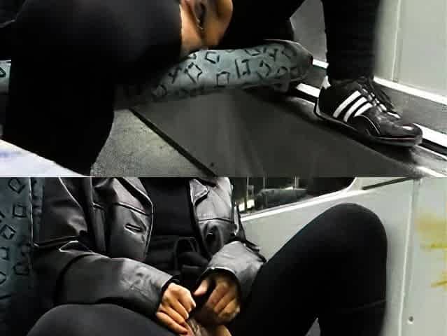 Horny girl fingerfucked to orgasm on bus