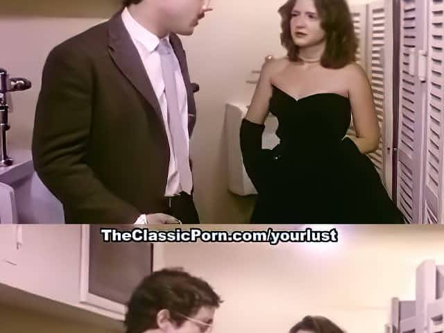 Kinky playgirl is about to have sex with a stranger, during the time that they are in a public WC