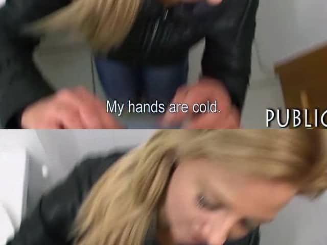 Blonde Teen Blowing In Public Toilet