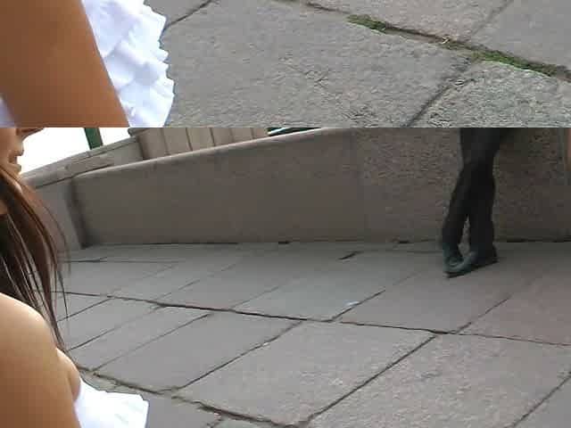 Cute beauty is pissing in the public place