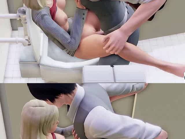 Missionary sex and steamy porn games in a public toilet