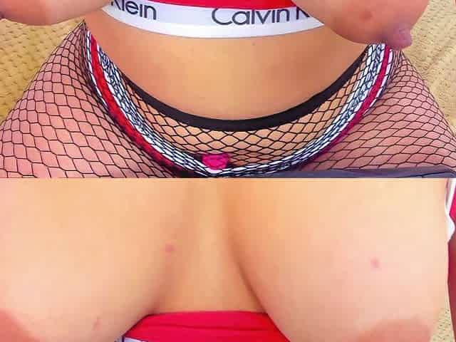 Dancing naked in Red fishnet stockings