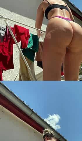 Spanking a naked summer babe's bare booty