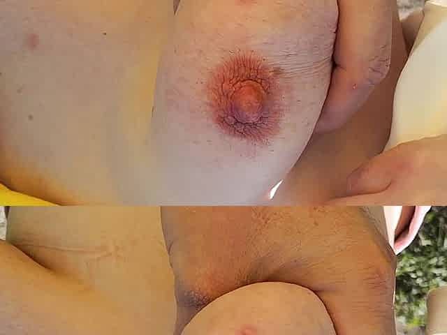 Firm titted beauty gets breast whip from mature dominant guy
