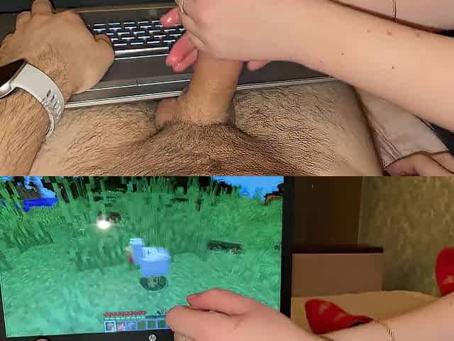 Playing Minecraft with Stepsister (Lengthy tugjob and post climax punishment)