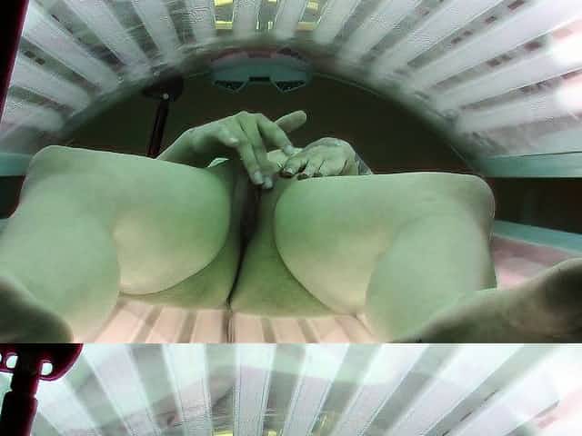 Punk Girl Secretly Masturbating in Solarium Tube