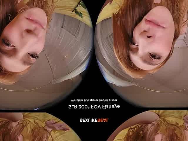 Slicing cum on face, mouth, tits and pussy