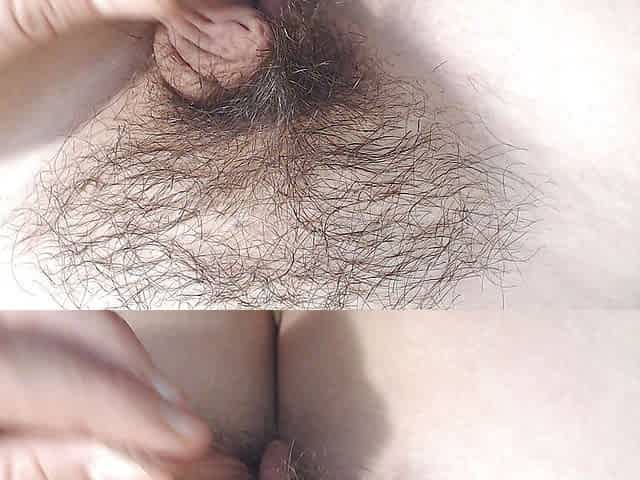 Standing big bush pussy lips hanging