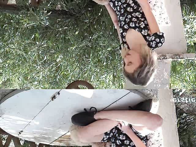 Sweety entertains herself in wild nature rubbing hungry pussy