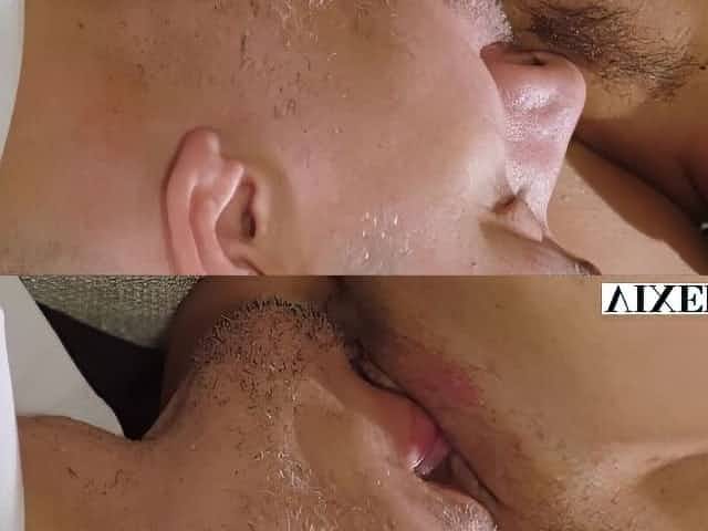 Hairy lesbian pussies licked before anal rimming