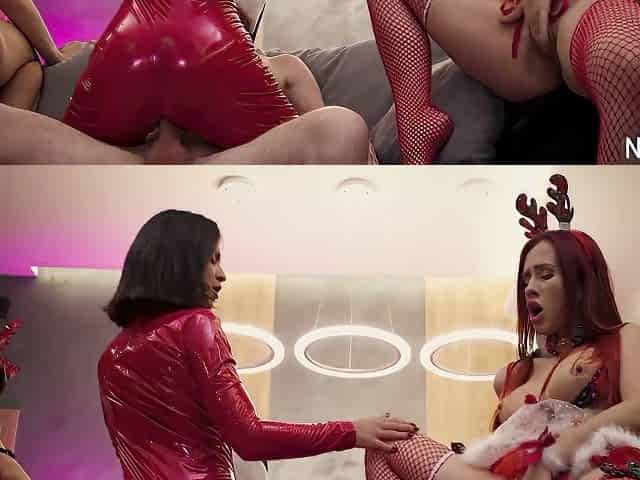 Group sex in shiny pvc lingerie