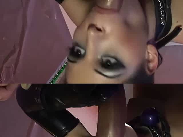 Obedient Chick In Kinky Pvc Black Bodysuit Face Fucked & Doggy Styled